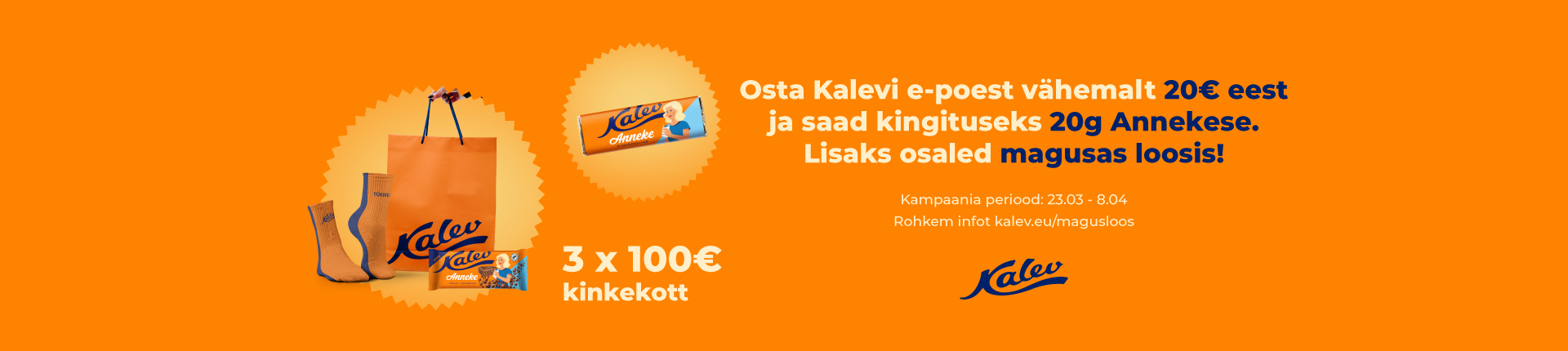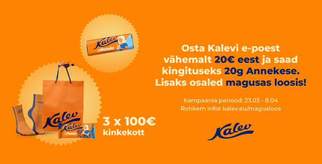 - Kampaanias osalemiseks tuleb sisse logida Kalevi e-poodi ja sooritada ost vähemalt summas 20€. Postikulu kaasa arvatud.