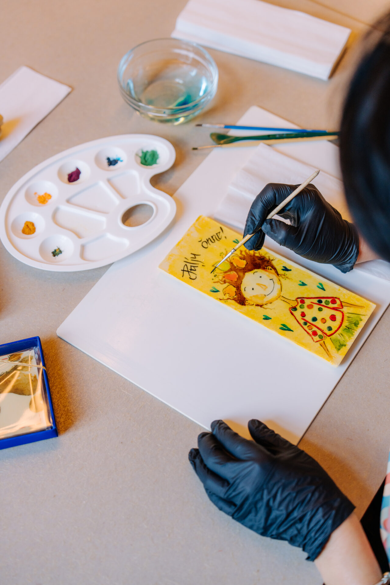 Töötoa käigus saad toiduvärvidega maalida valgele 190g šokolaadile koolitaja juhendamisel kauni pildi. Šokolaadi saad pakkida kaunisse kinkekarpi.